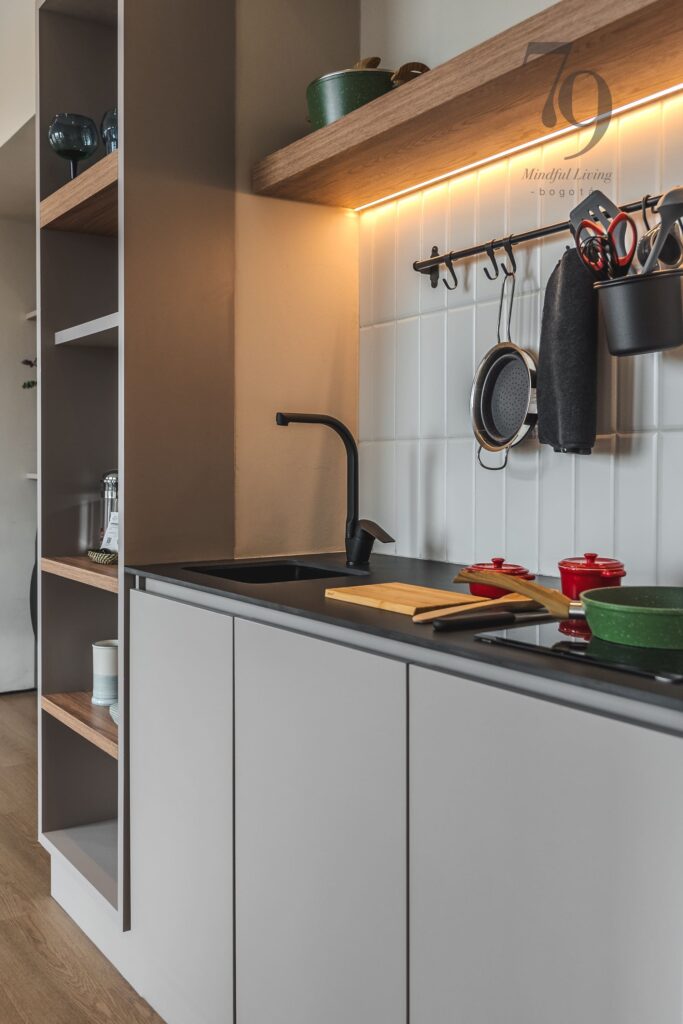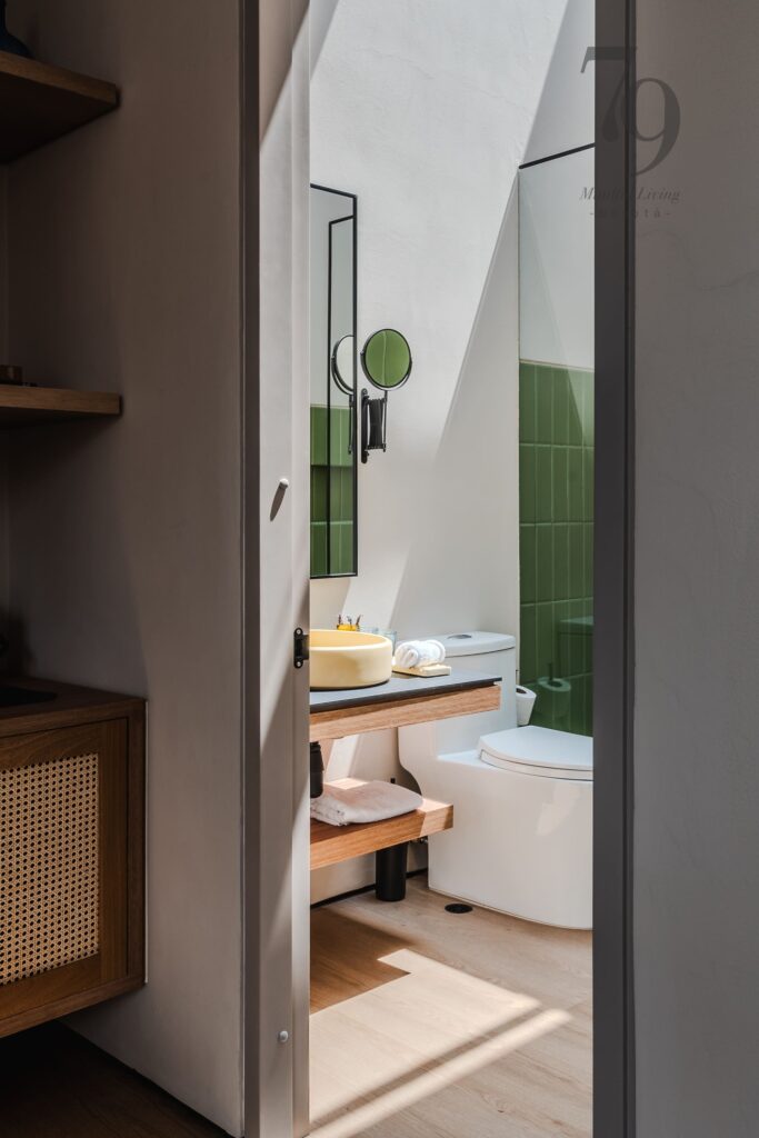 This apartment offers a spacious bedroom and living room with kitchen, with a large dining table for four people and a sofa bed. Two complete bathrooms with exceptional zenithal lighting, bar, and amenities for your maximum comfort, including a full-sized fridge and freezer and washing/drying machine. Enjoy views of the city through the green balcony and floor-to-ceiling windows.